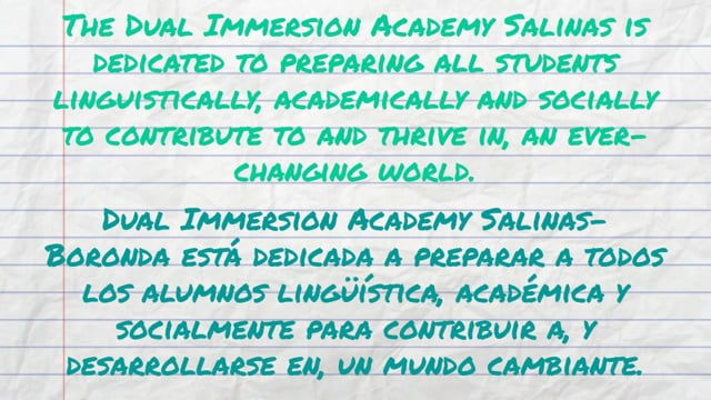 131 views 11 likes 1 loves 2 comments shares Facebook Watch Videos from Dual Immersion Academy of Salinas PTO. Get Dual Immersion Academy of Salinas can be contacted at 831 753-5615. Dual language immersion is an educational model that integrates native English speakers and native speakers of a target language in the same classroom for the entire school day.